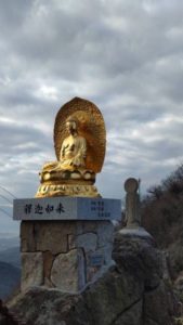 お釈迦様の像と鐘撞堂があり