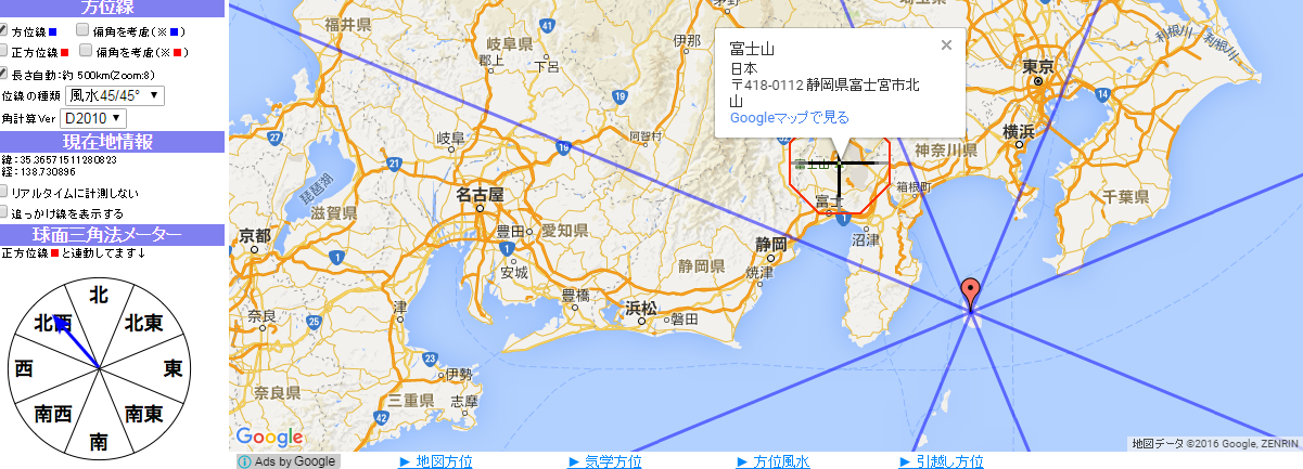 伊豆大島から北西は何処かとコンパスを取り出し、それから地図を見てみると。。。