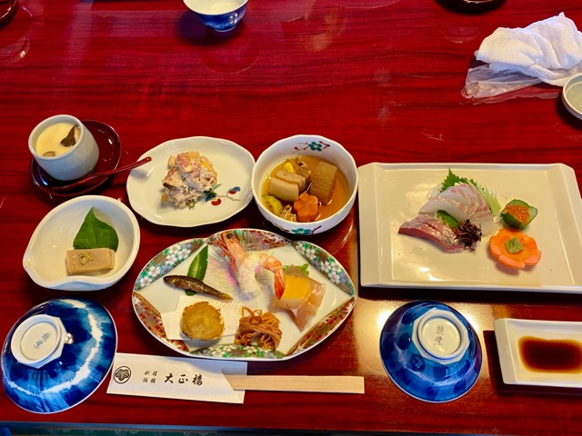 この日のメニューは大正楼自慢の会席料理
