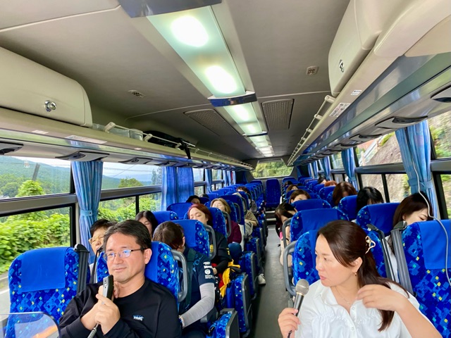 バスの中で三輪山登拝のご感想など聞きつつ